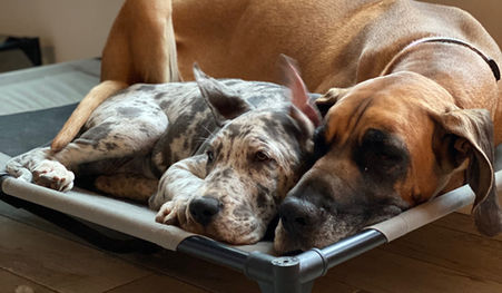 Our adult Danes are more than just breeding prospects - they are members of our family. We treat them as pets first and foremost and part of our program secondary. With 9 acres of wooded property to run and play, our dogs live happy and healthy lives alongside our (human) family. We are dedicated to our pack and strive to provide them with the best from nutrition and affection to OFA health testing.